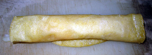 One by one, they are set aside on a plate with a long strip of paper towel--enough to fold the towel between each oily tortilla.